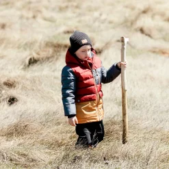 Tricolor Puffy Jacket Barn Red, Yellow And Dark Grey