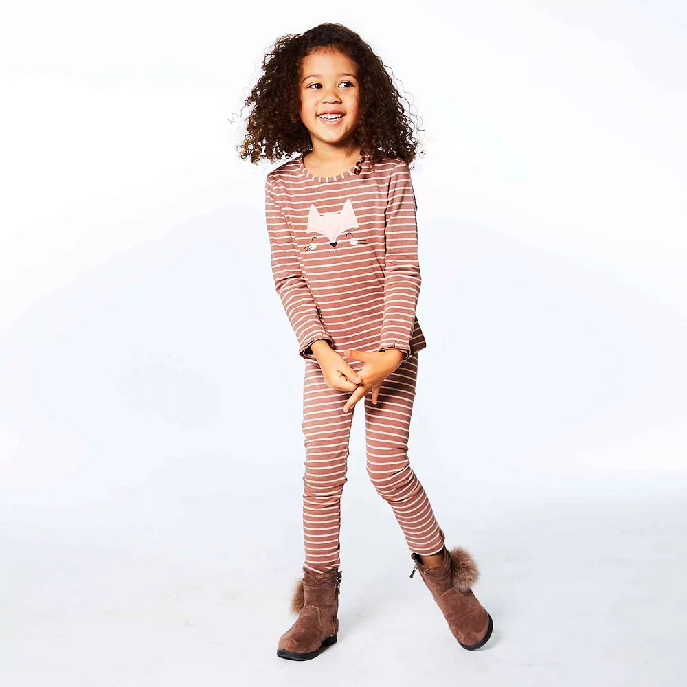 The perfect blend of style and comfort, our Cotton Legging Striped Brown and Pink is easy to mix and match with any top in our Tale Of The Cat collection. Stretchy in soft cotton/elastane fabric, these pull-on leggings boast allover horizontal stripes, a comfy elastic waistband, and a logo label at the hem.