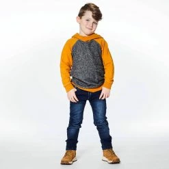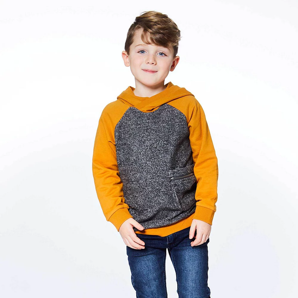 Make chilly days more sporty and more stylish with our Hooded Fleece Top With Zipper Pocket Brown and Dark Grey. This pullover sweatshirt features contrast long raglan sleeves, a contrast hood, and a zipper pocket on the front.