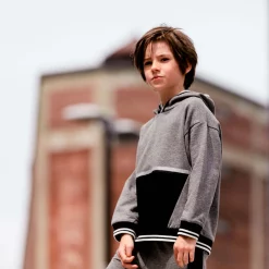 He’s sure to love the cool look and comfortable feel of our Hooded Fleece Top With Zipper Pocket Dark Heather Grey, Black and White. Detailed with a contrast front pocket, this hoodie is made from cotton/poly fleece and features a pullover silhouette with long sleeves, dropped shoulders, and contrast trim.