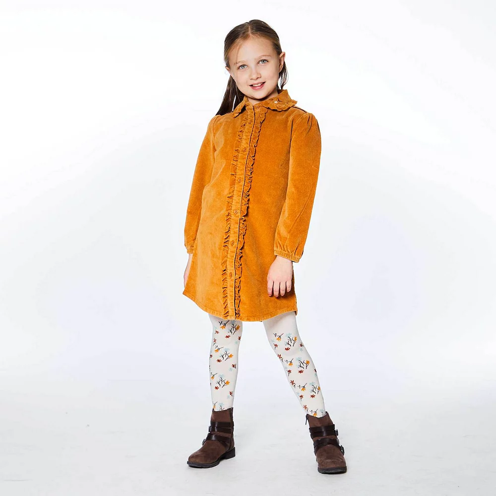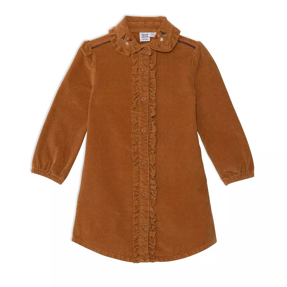 A ruffled placket lends a touch of texture to our Long Sleeve Corduroy Shirt Dress With Frill. This button front shirt dress is made from pinwale cotton corduroy and features elastic cuffs, a rounded collar with floral embroidery, and contrast piping across the shoulders.
