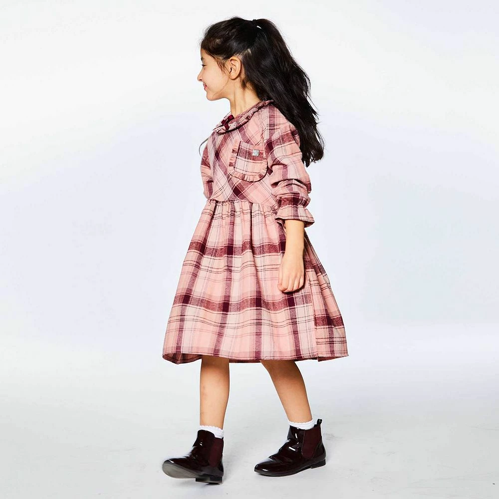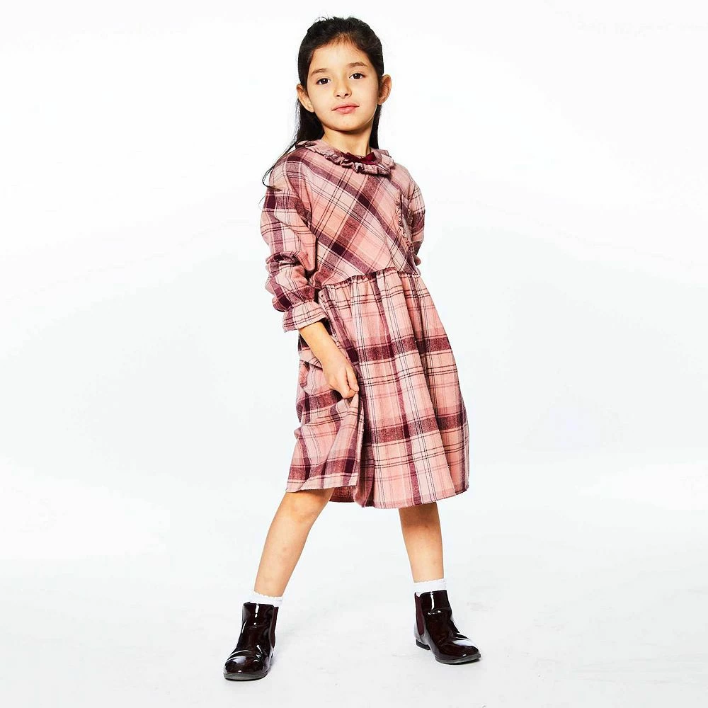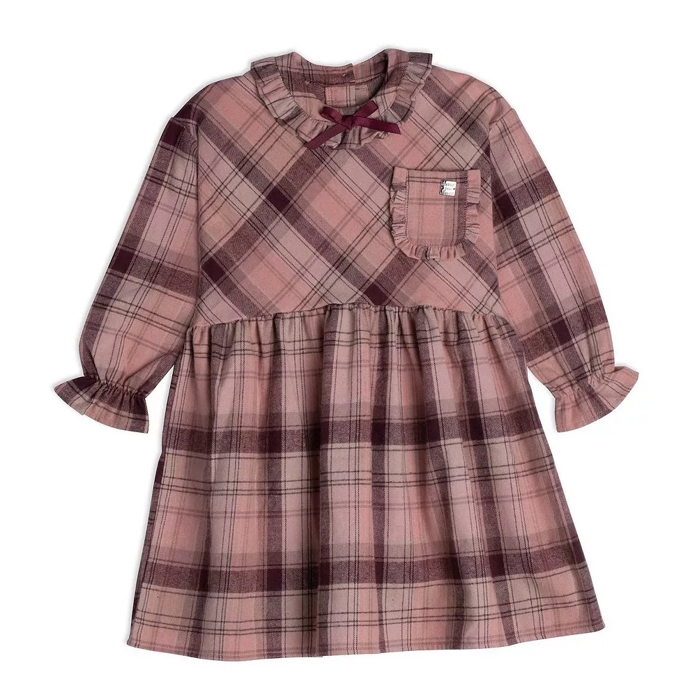 With a bias plaid bodice and a flared skirt, our Long Sleeve Dress Pink and Burgundy Plaid is perfect for any party or play date. This adorable dress features long sleeves with elastic cuffs, a round neckline with a bow and ruffle trim, and a patch pocket on the left chest.