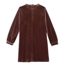 Polka dot ruffle trim adds a little something extra to this versatile velvet-finish shift dress. Our Long Sleeve Dress With Frill Dusty Ocher features long sleeves, a round neckline, and a metal logo plate at the hem. The stretch fabric makes it equal parts comfortable and chic.