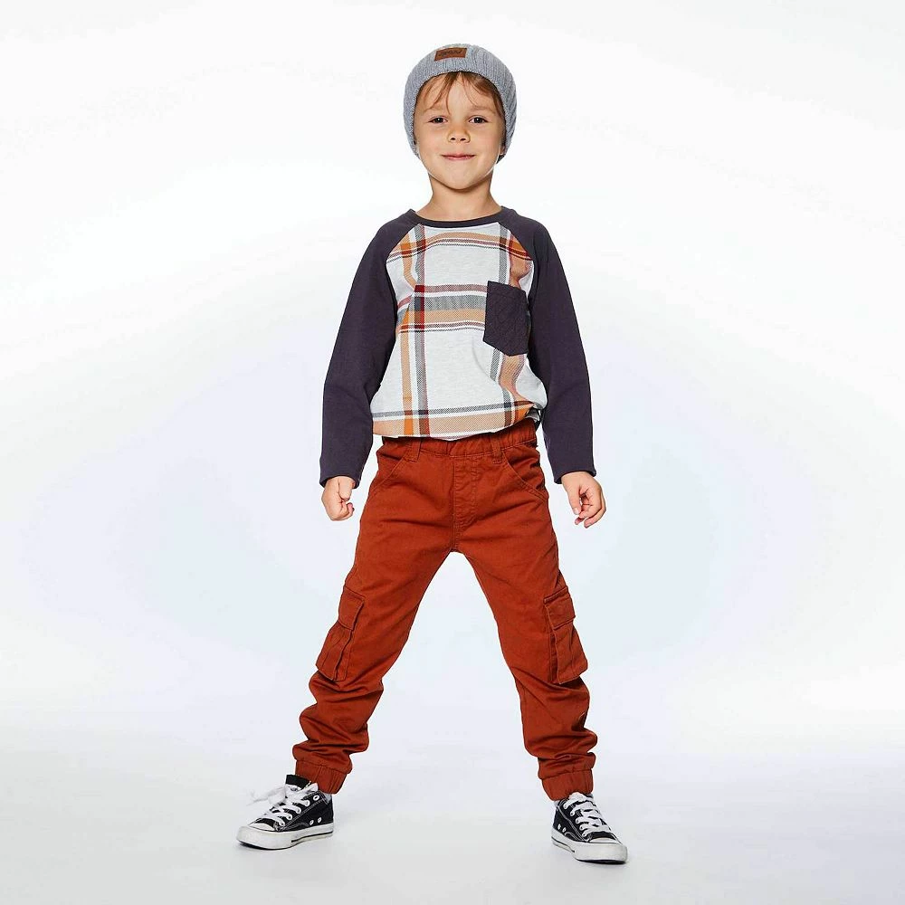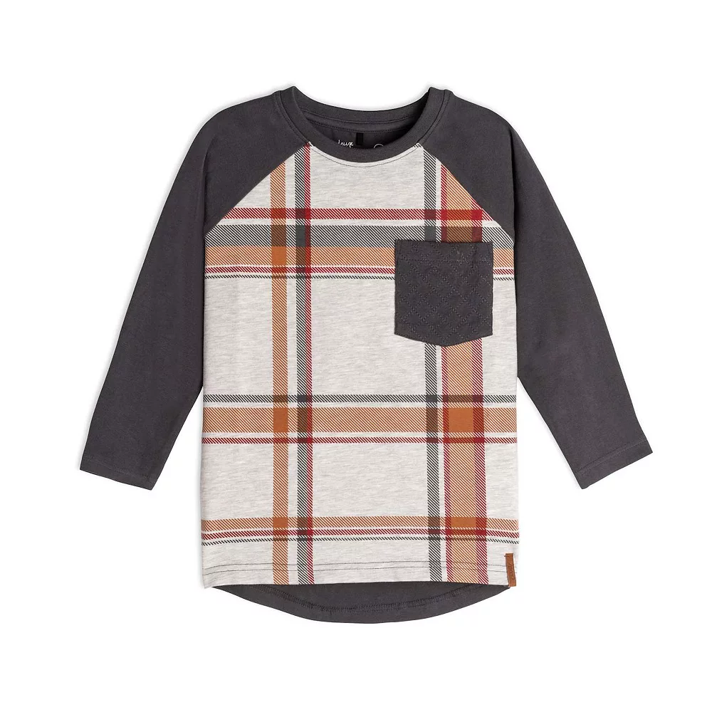 Add instant style to any boy’s wardrobe with our Long Sleeve Raglan Jersey Top With Pocket Plaid. Made from soft cotton/elastane, this jersey tee features contrast raglan sleeves, an allover plaid print, and a solid patch pocket on the chest.