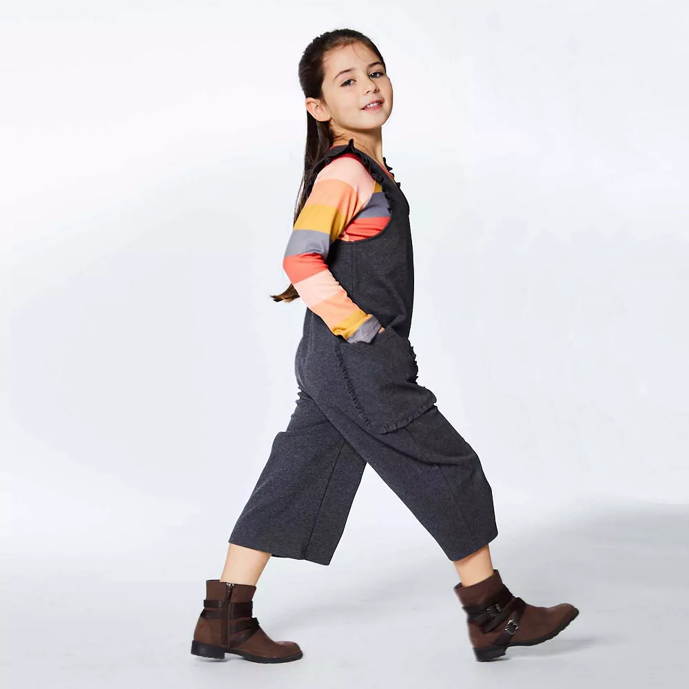 In a sleeveless silhouette with wide straps, our Milano Overall With Pocket pairs perfectly with any solid bodysuit or printed top. This one-piece overall features flat straps with ruffle trim, a V-neckline, and patch pockets on each leg.