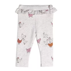 Ruffled shoulders and a playful hen print make this set perfect for any little chick! The Organic Cotton Top and Pant Set Hen Print Rust and Beige features a long sleeve top with a round neckline, back snaps, and a graphic print. It’s teamed with an allover hen print legging with an elastic waist and a row of ruffles beneath the waistband.