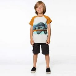 With a sloth and striped graphic, our Print Jersey Top Oatmeal Mix is perfect for any day of play. This cotton/elastane tee features a bold chest print with short raglan sleeves, a ringer crew neckline, and a slightly rounded back hem. Team it with French terry shorts or joggers for a cool, laidback look.