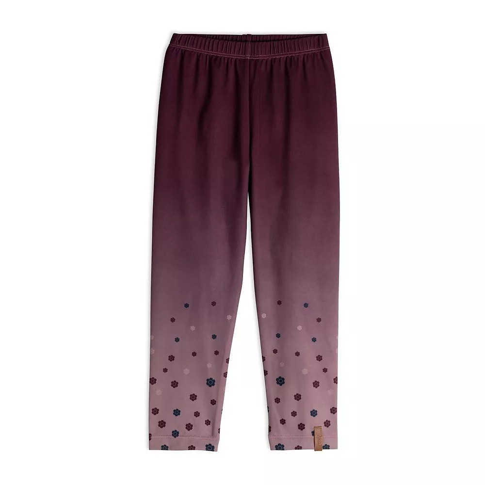 An ombre pattern adds unique charm to our Printed Flowers Legging Gradient Plum. These leggings are made from a stretch poly/elastane blend and feature an elastic waistband and a gradient pattern with flowers printed at the hem and up the legs.