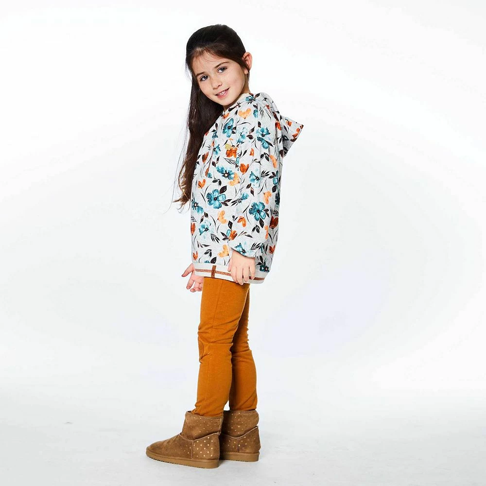 A bold floral print makes this hooded top perfect for the little girl with a sporty sense of style. Our Printed Long Sleeve Top With Pocket features a comfortable fit with dropped shoulders, a striped rib knit hem, and a left chest patch pocket with contrast piping.