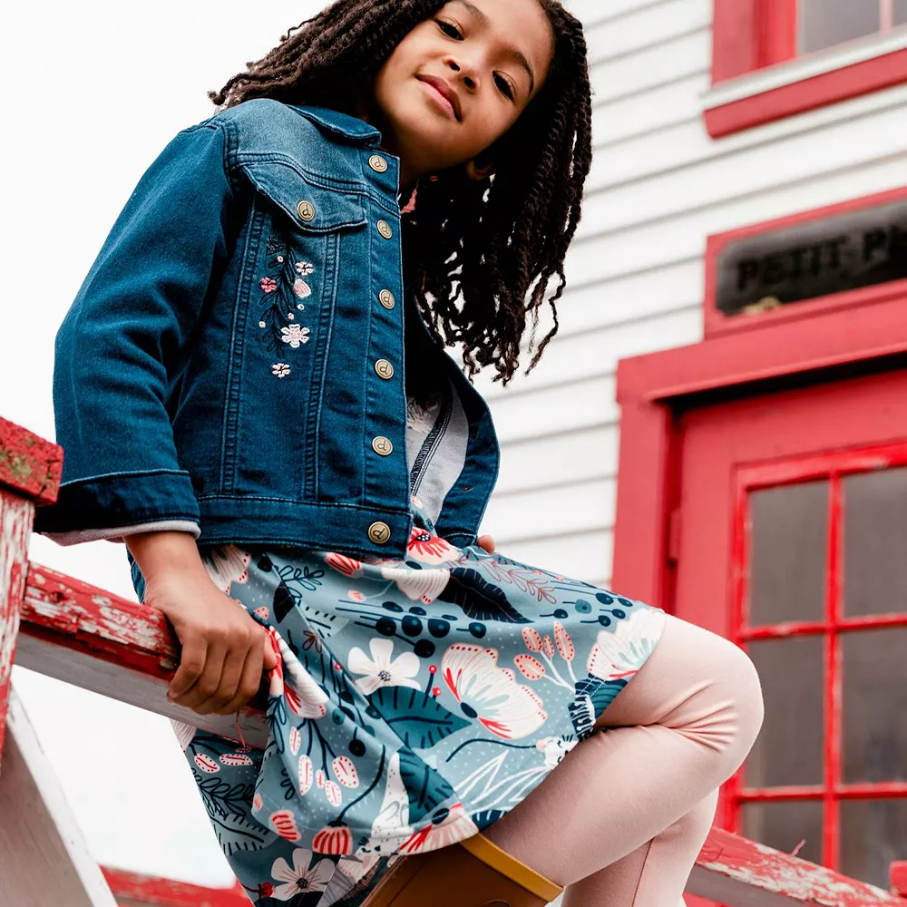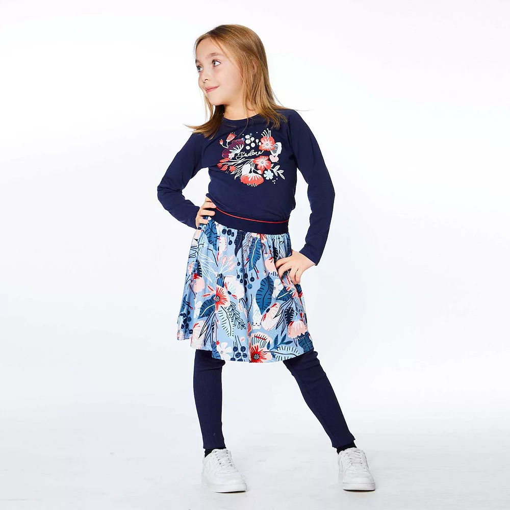 A flared circle silhouette makes this allover print skirt perfect for the girl who loves to twirl! Our Printed Weasels Flared Skirt is made from a stretch poly/elastane blend and features a comfy elastic waistband with a contrast stripe and an allover flower and weasel print.